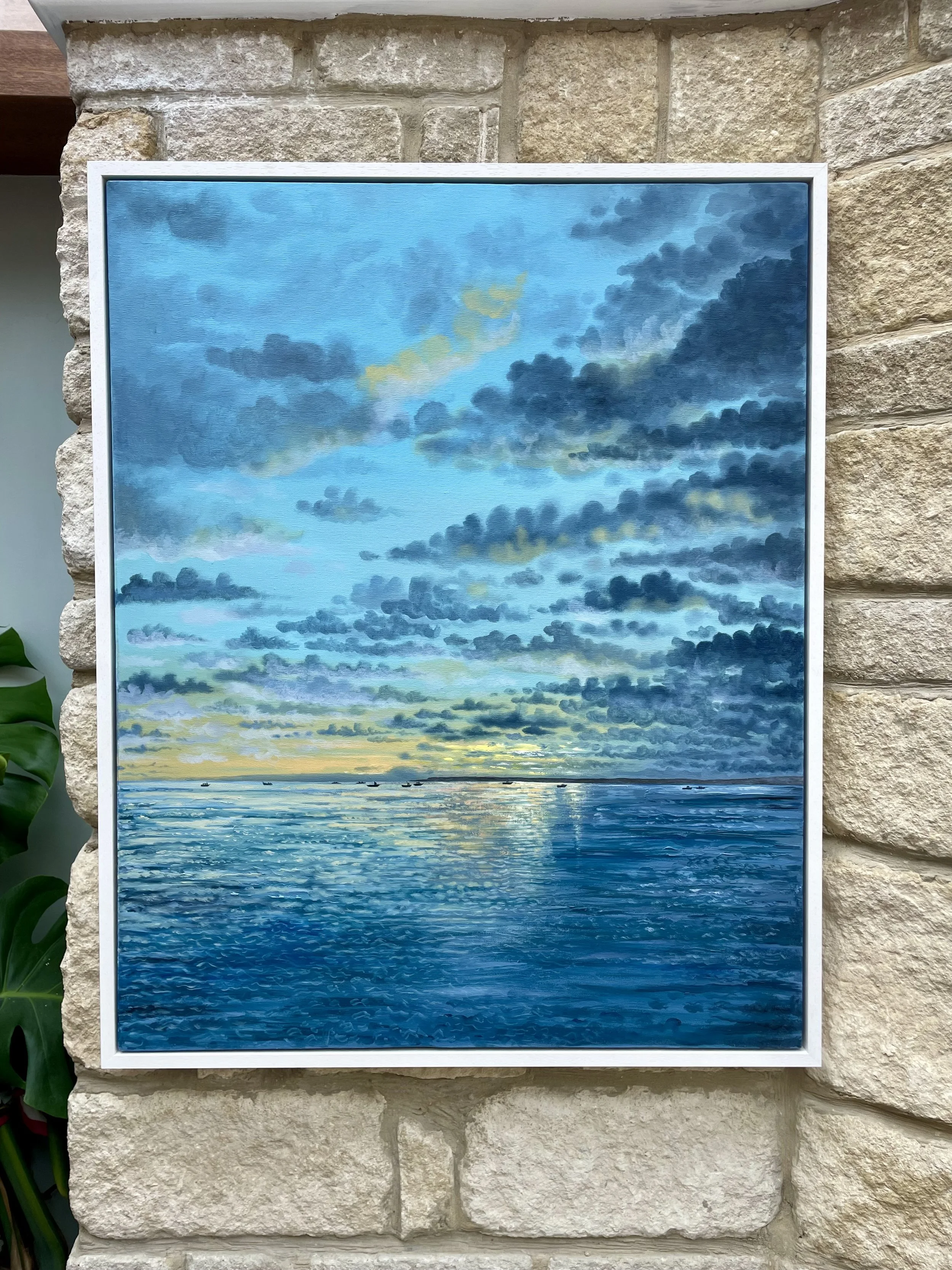 The original oil painting ‘Halcyon’ is now back from the framers and I hope you’ll agree that it looks amazing! It’s everything I’d hoped it would be, and what I had imagined in my head when I first put paintbrush to canvas, which is a rare thing! It’s now listed for sale on my website here. I have 2 blank canvases the same size as this big piece, and I now need to think what I’m going o try and capture on them next.