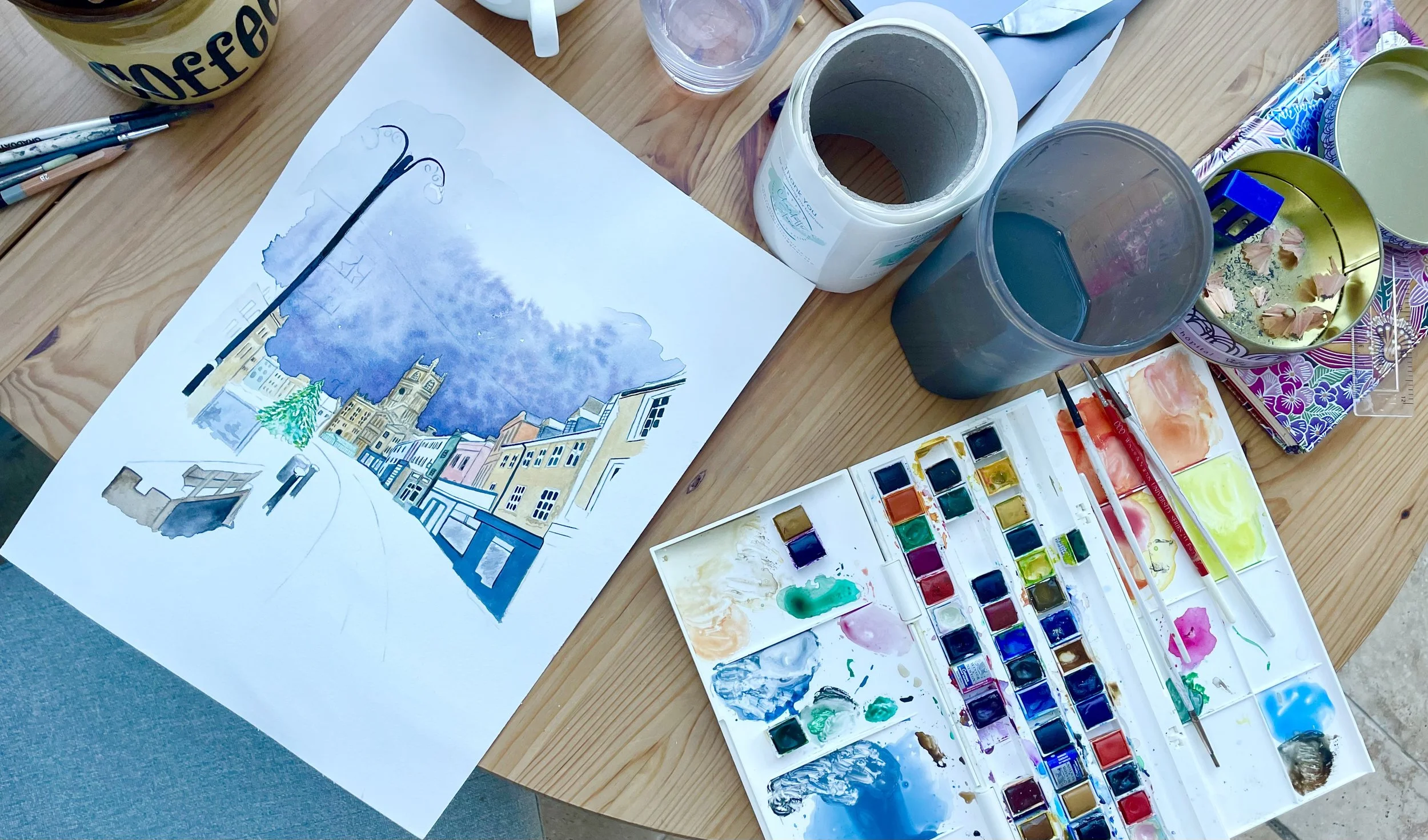 One of my goals for September was to paint a local scene to then turn it into a Christmas card. I chose my home town of Cirencester, and I’m thrilled with the results. These festive cards, called ‘A Cotswold Christmas’ are now available on my website here, and can also be bought as a multipack show casing all of my Cotswold wintery scenes.